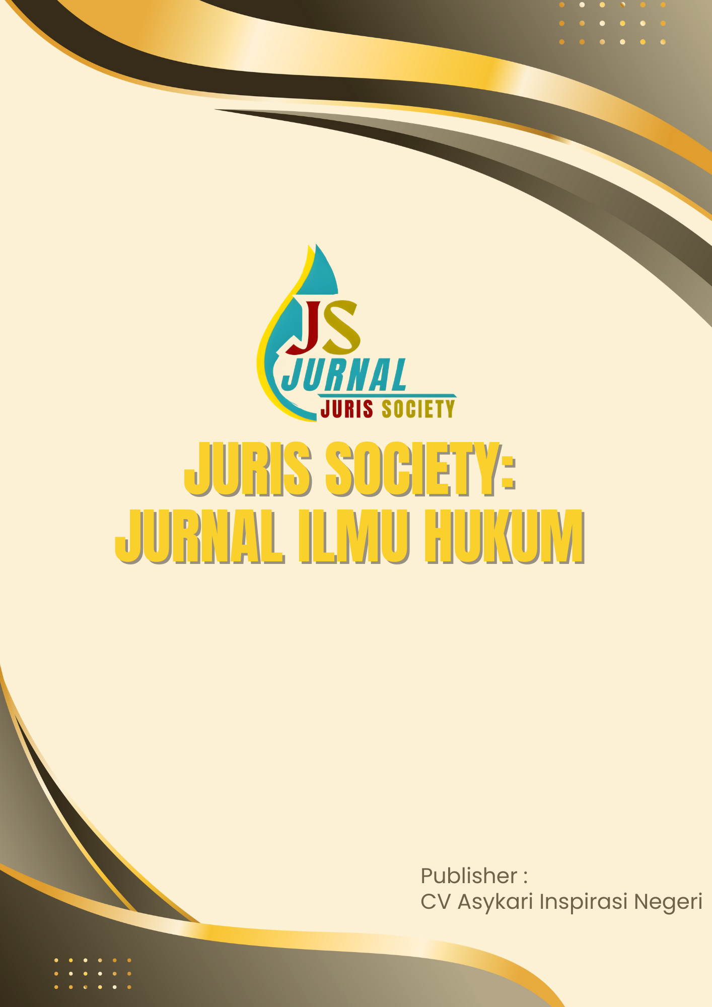 Juris Society: Jurnal Ilmu Hukum adalah jurnal peer-review yang diterbitkan 6 kali setahun oleh CV Asykari Inspirasi Negeri. Jurnal ini berfokus pada kajian hukum (seperti Hukum Tata Negara, Hukum Pidana, Hukum Perdata, Hukum Administrasi Negara, Hukum Internasional, Hukum Bisnis, Hukum Adat, Hukum Islam, Sosiologi Hukum, Politik Hukum, dan Filsafat Hukum)